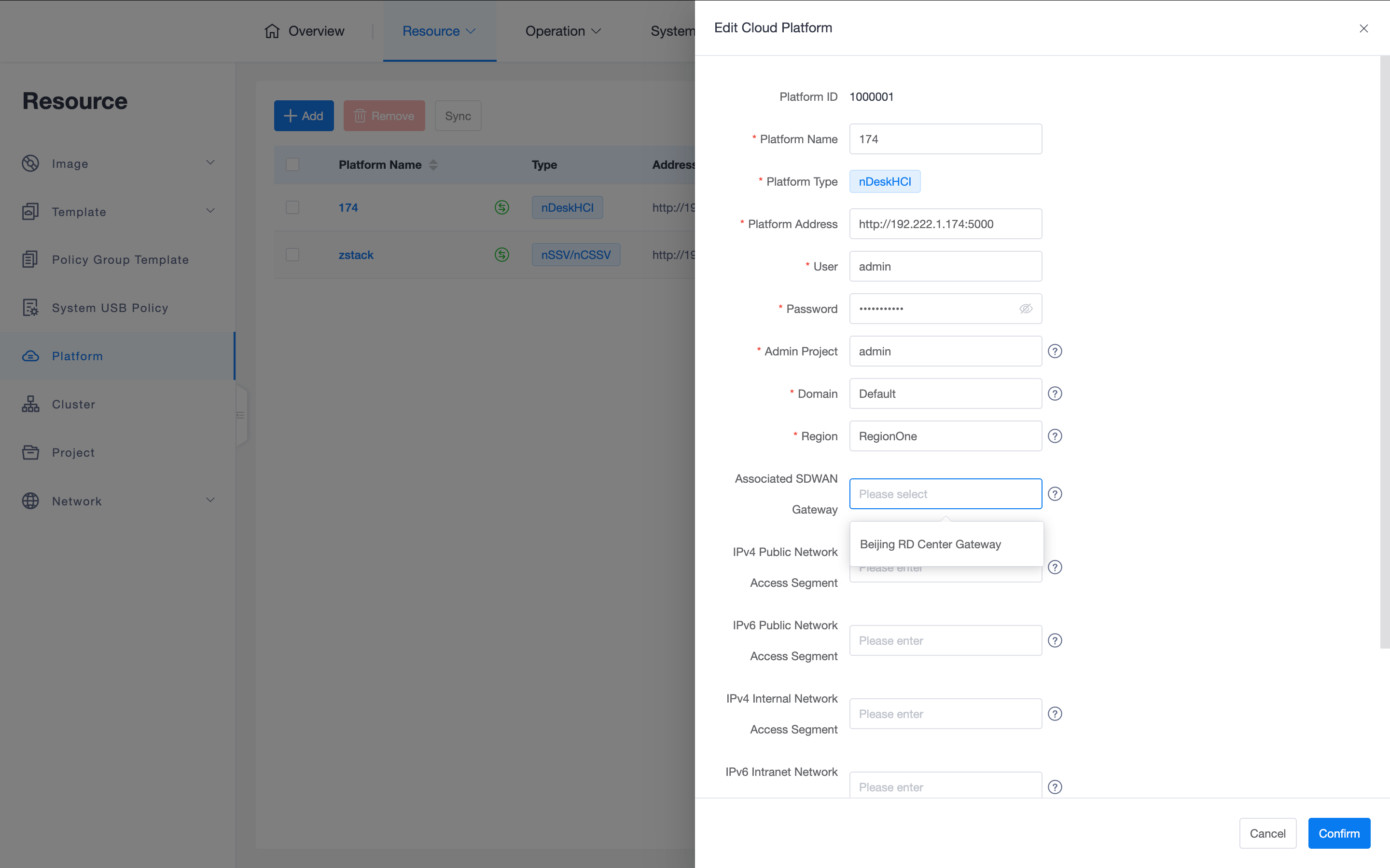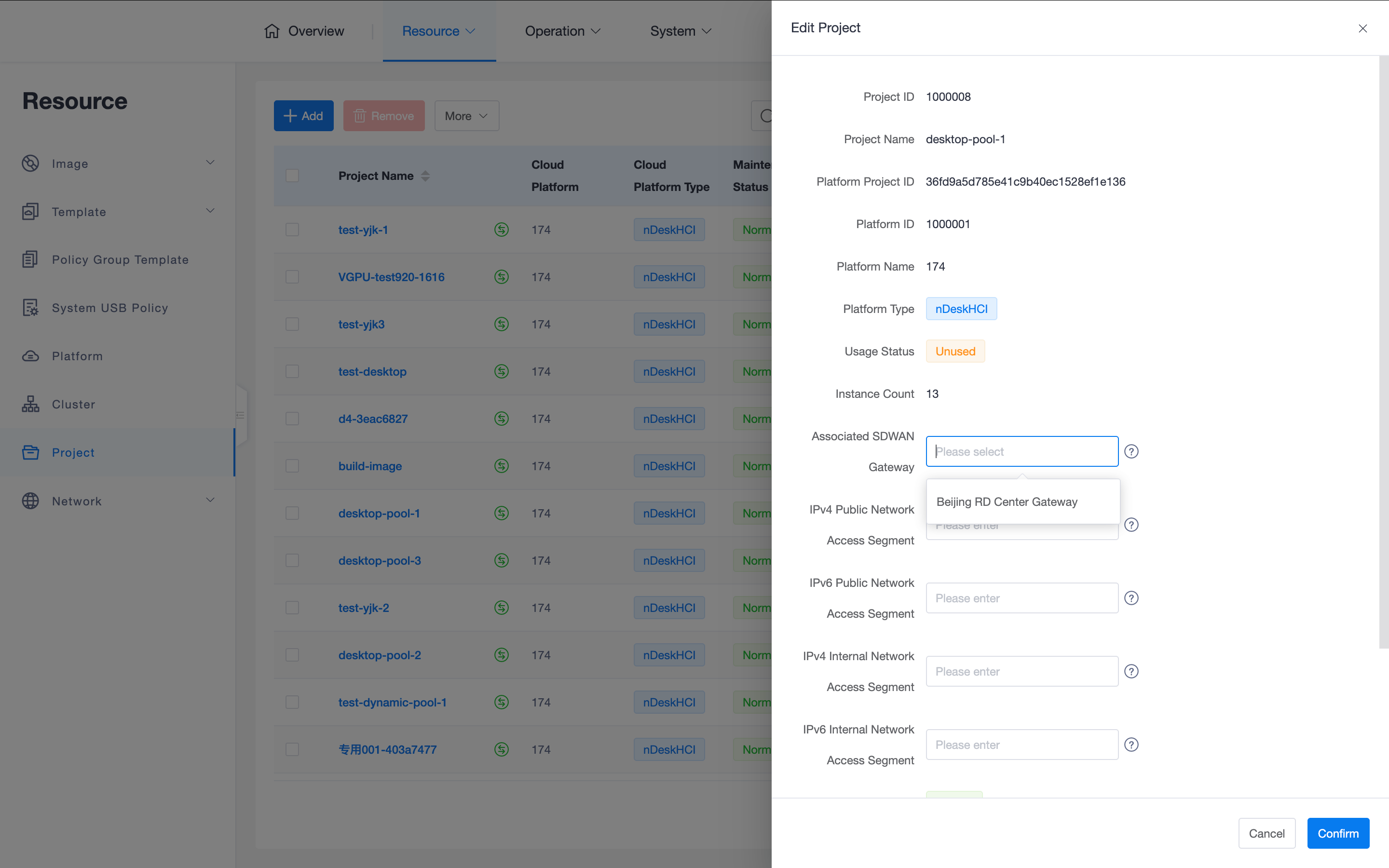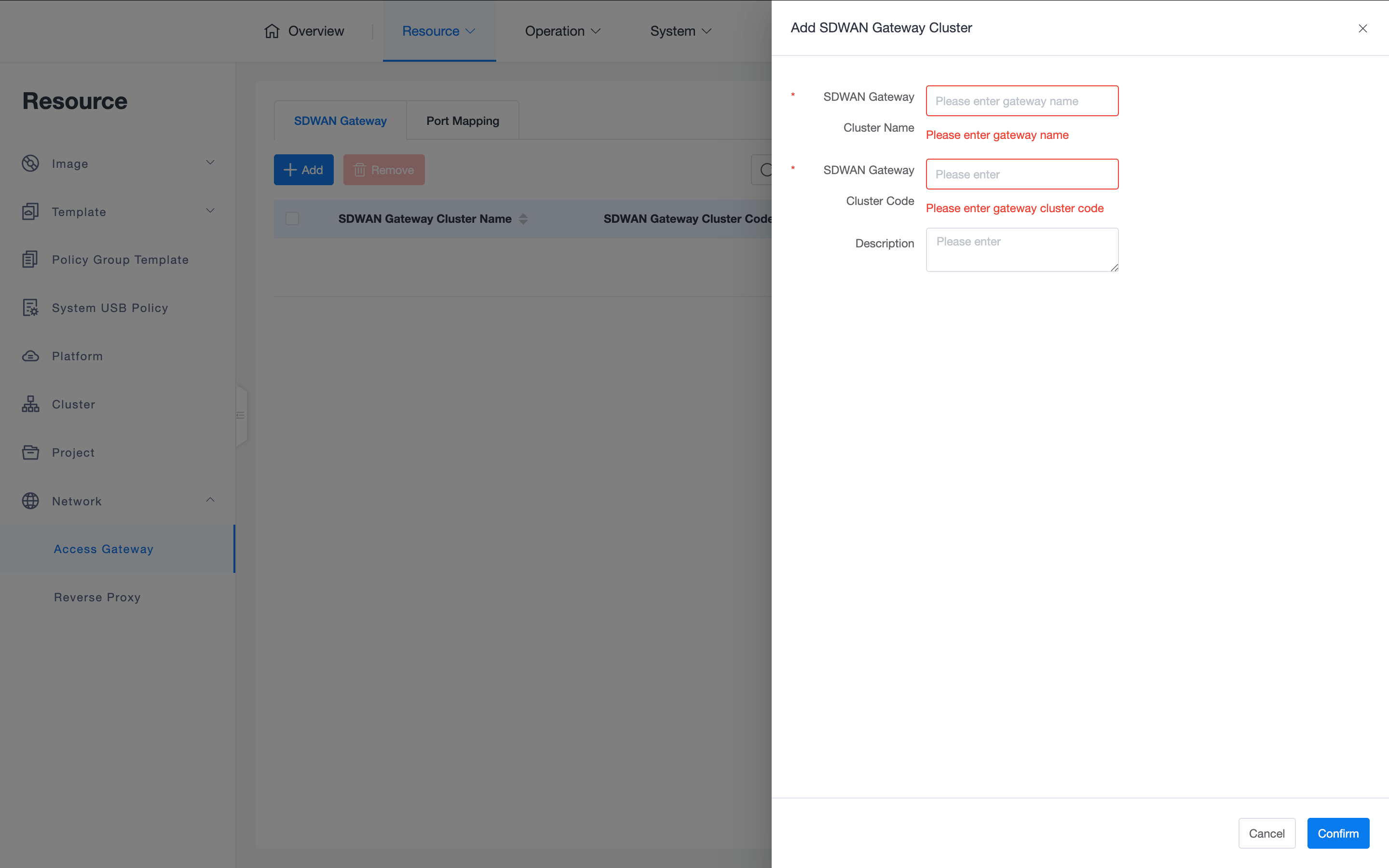 - Operation Path: Go to Resources -> Network -> Access Gateway -> SDWAN Gateway page.