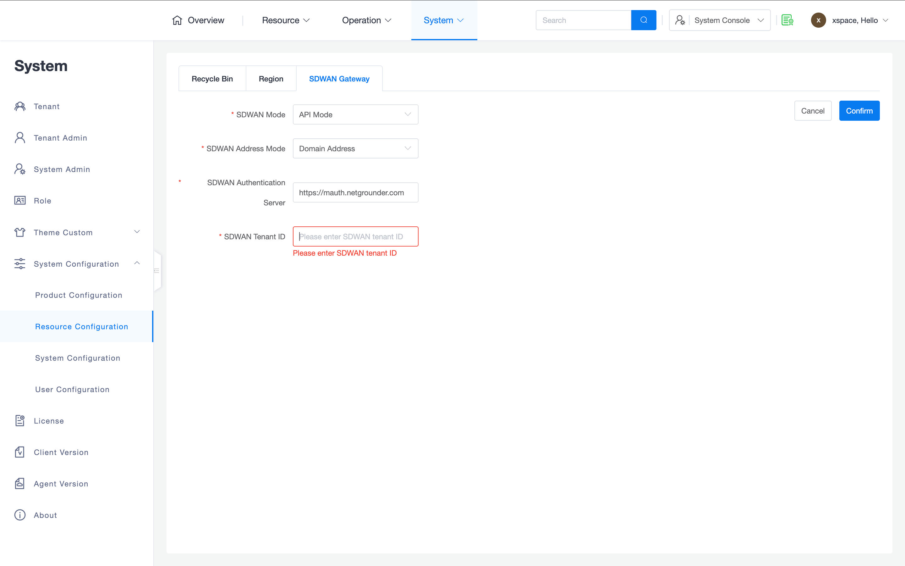 After obtaining the "SDWAN Tenant ID", please configure it in the system console according to the following steps.