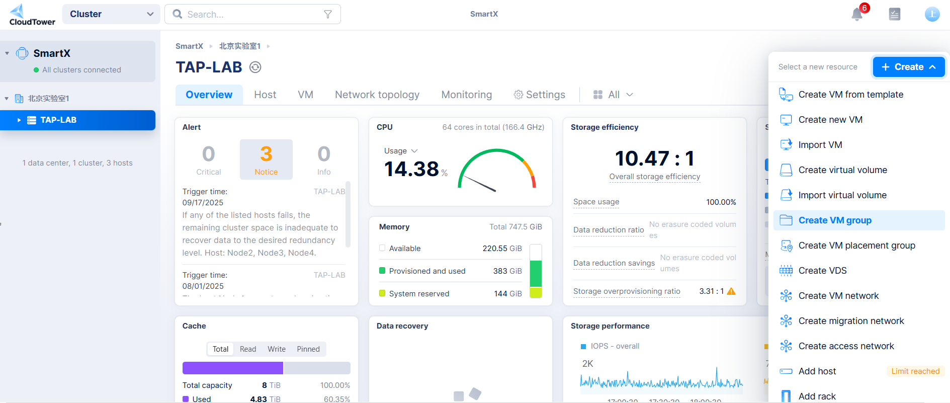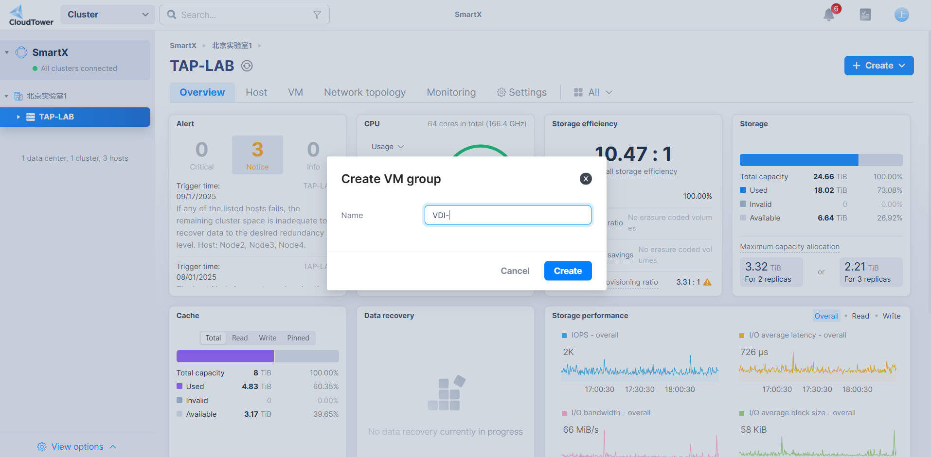 In the SmartX console, click the top-right menu and select "Create VM Group".