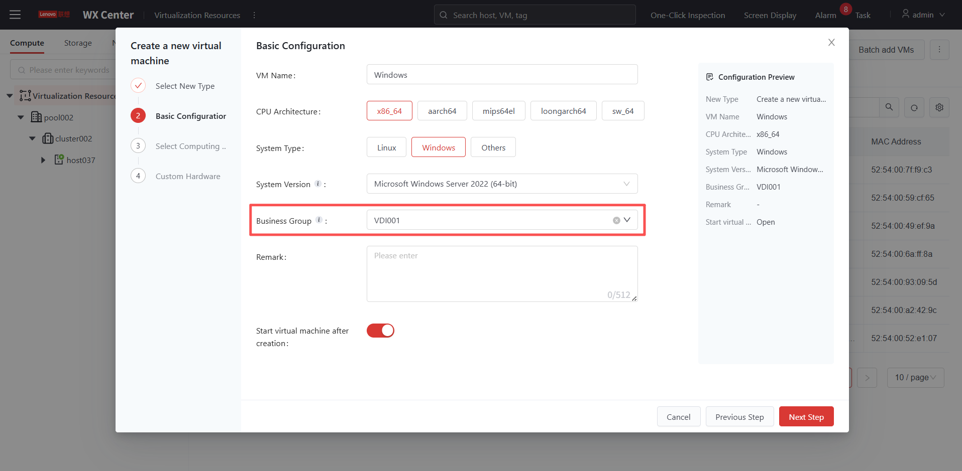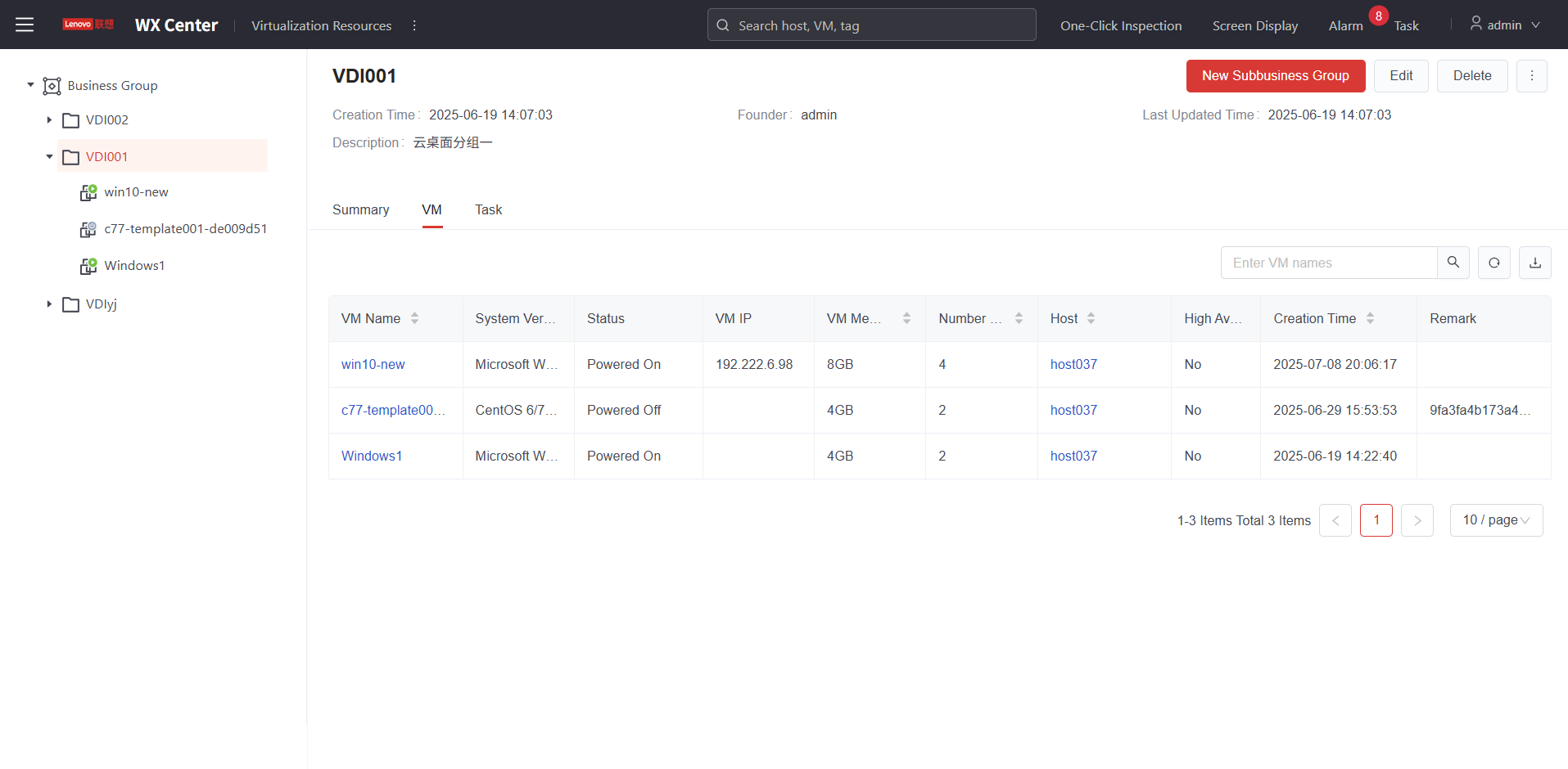 The created virtual machines will be located in the specified business group, facilitating subsequent synchronized management.