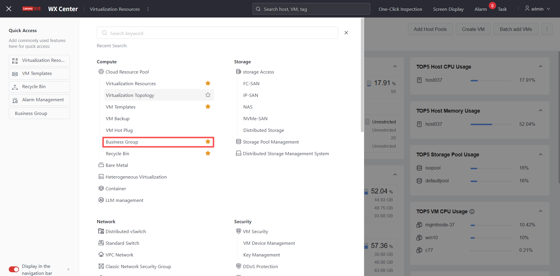Tip: As a commonly used module in cloud desktop scenarios, it is recommended to star the "Business Group" entry menu and save it to the left navigation bar.