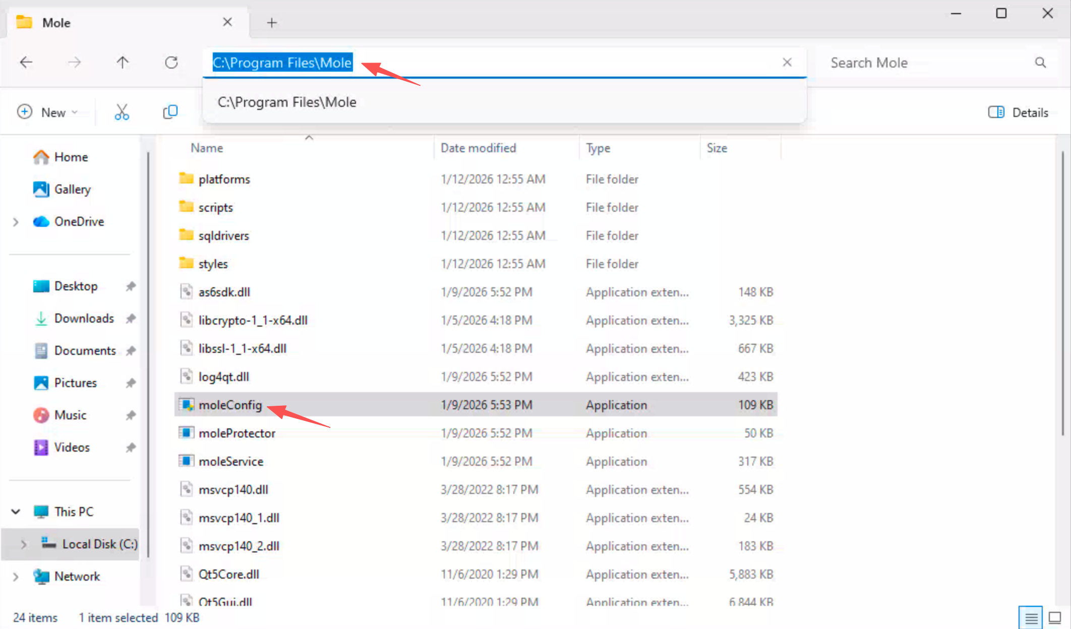 /opt/apps/mole/run_moleconfig.sh - Operation Instructions: Please ensure to run with sudo privileges. The configuration logic and status check are similar to Windows.