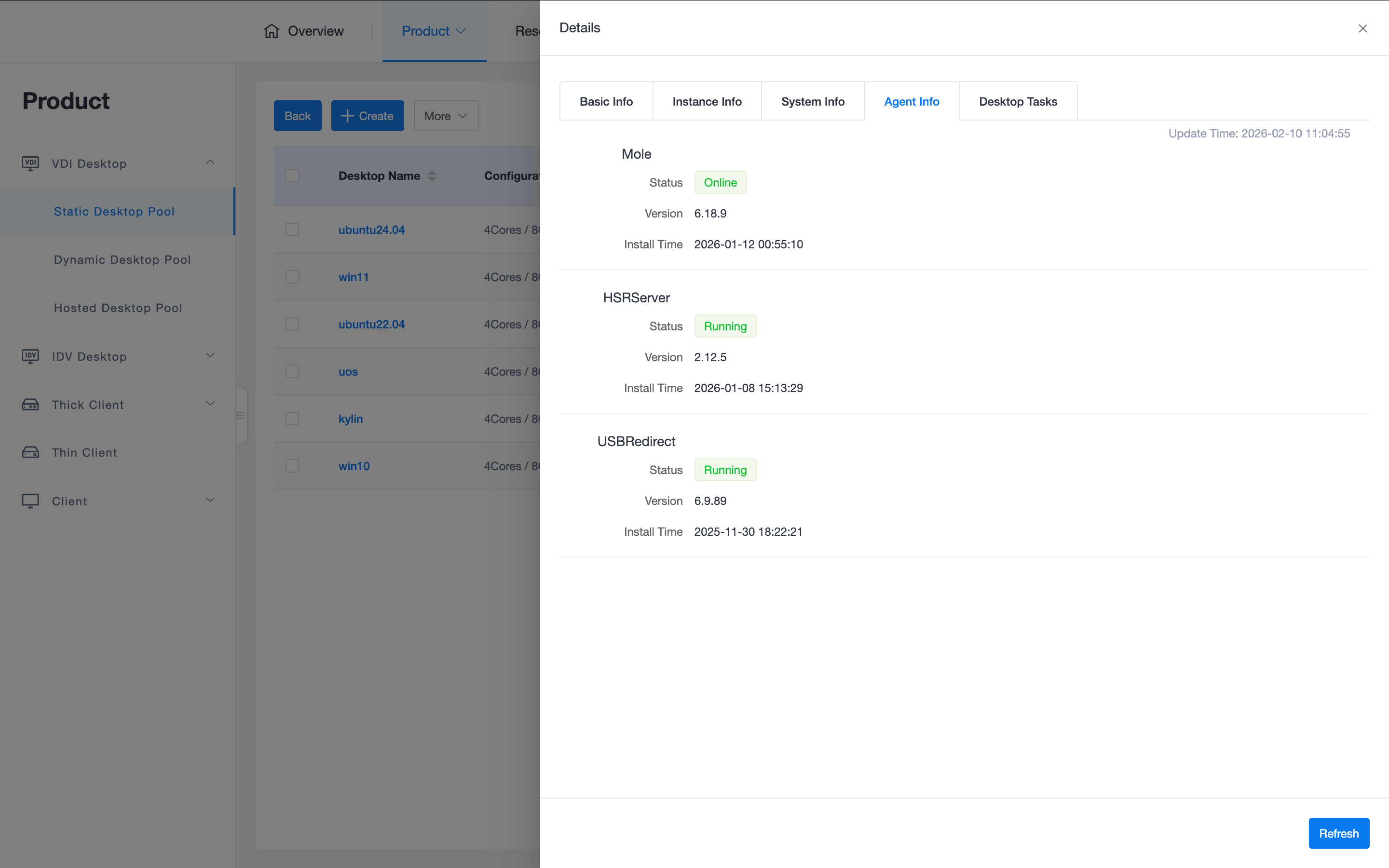 The agent component is the core for achieving desktop management and protocol connection. Since the provided base images usually come with an older version of Mole pre-installed, it must be updated to a version matching the current management component before creating a new image.