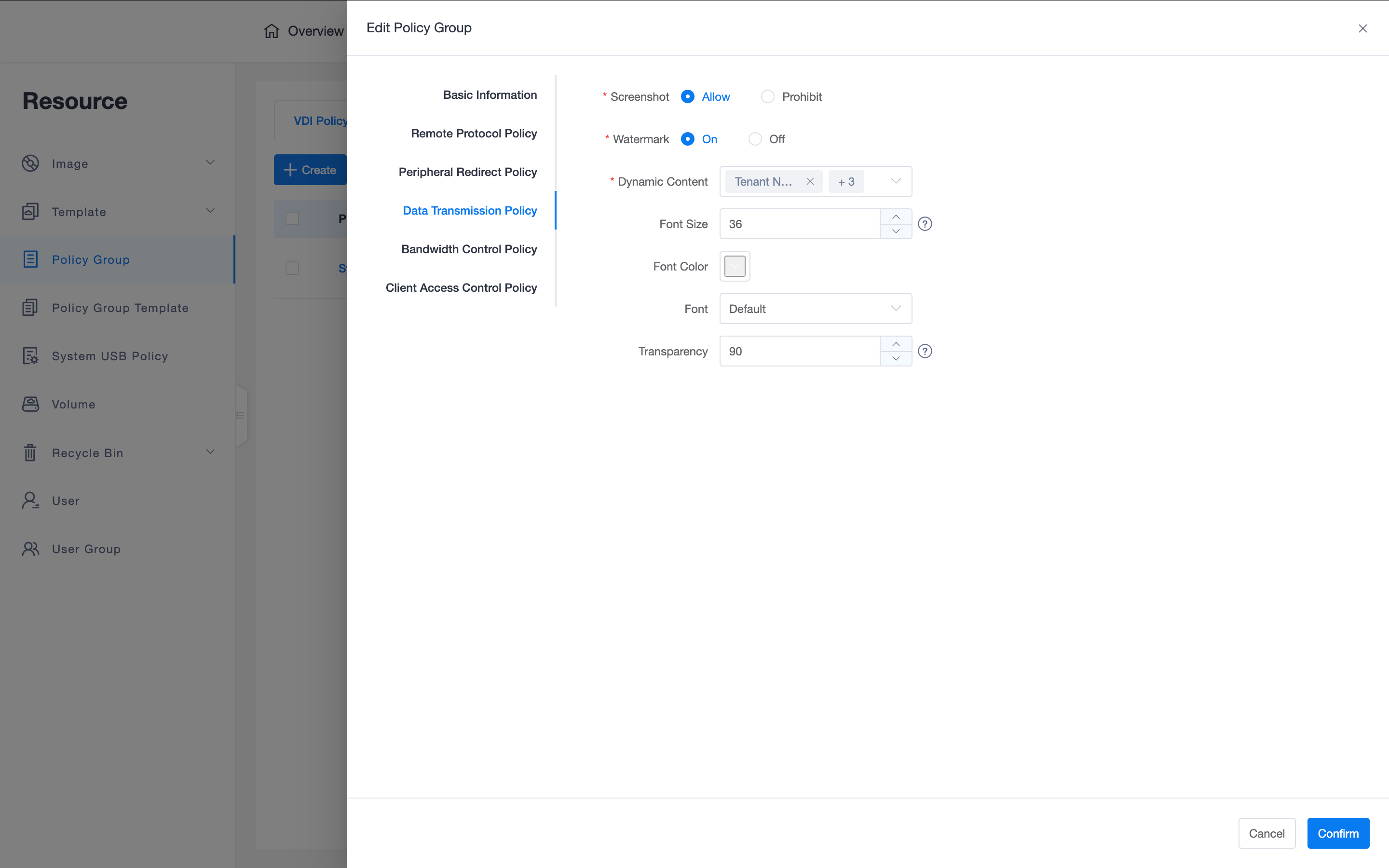 - Policy Customization: In the tenant console's "Policy Management -> Policy Groups", enter policy parameters according to business needs.