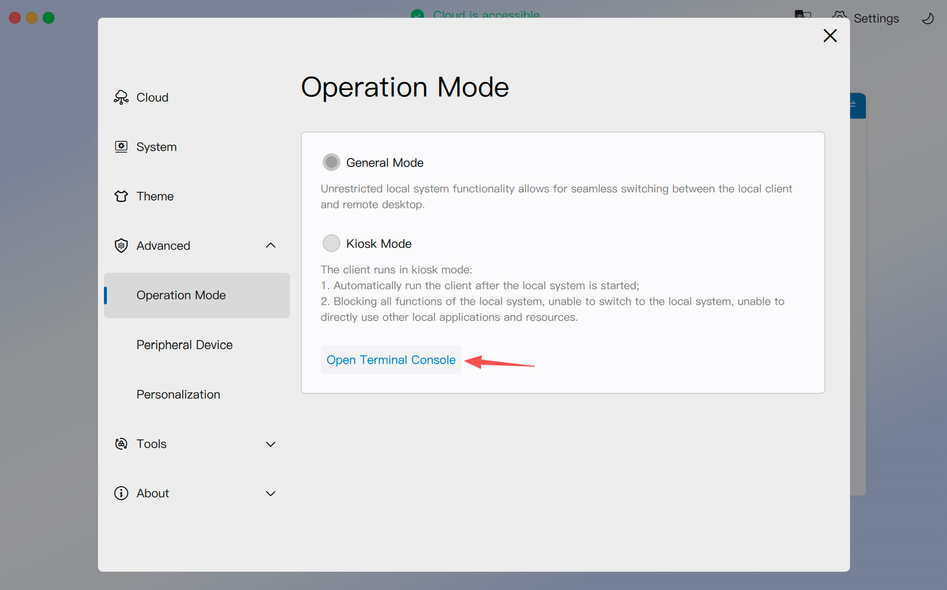 Running Mode Switching: When needing to modify the running mode on a thin client, this password must be entered for verification. Cloud terminals offer two running modes: