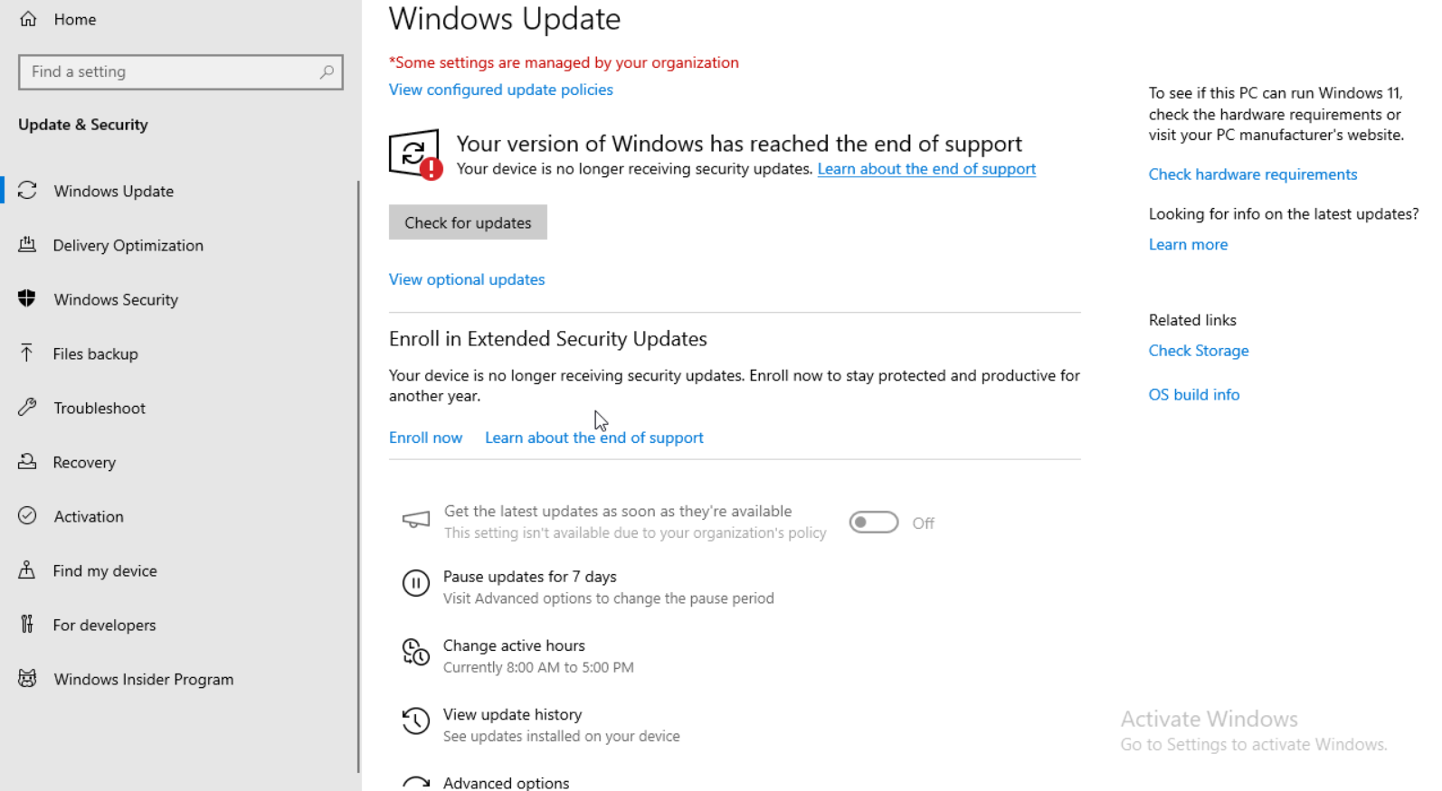 - Windows updates are clean, with no pending installation items.
