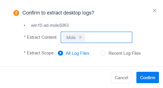 In the management backend's desktop operations, click "Extract Logs", select Mole for content, download and view the internal execution logic.