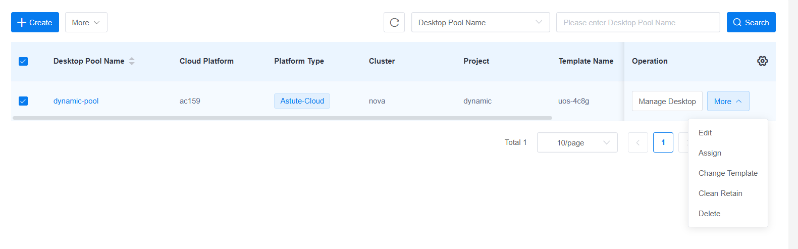 Click "More -> Assign" in the dynamic desktop pool operation column.