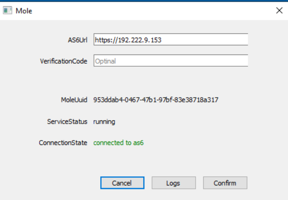 - When configuring the Mole agent on the hosted desktop, this verification code must be entered to complete the matching, so that the management component can identify which hosted desktop this Mole belongs to.