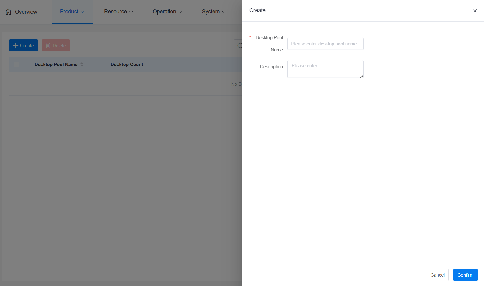 Since hosted desktops are existing resources, the system does not support "Create" or "Delete" VM operations, only "Add" and "Remove" functions. The removal operation only deletes the record in the management system, does not affect the operation of the desktop system, and does not enter the recycle bin.