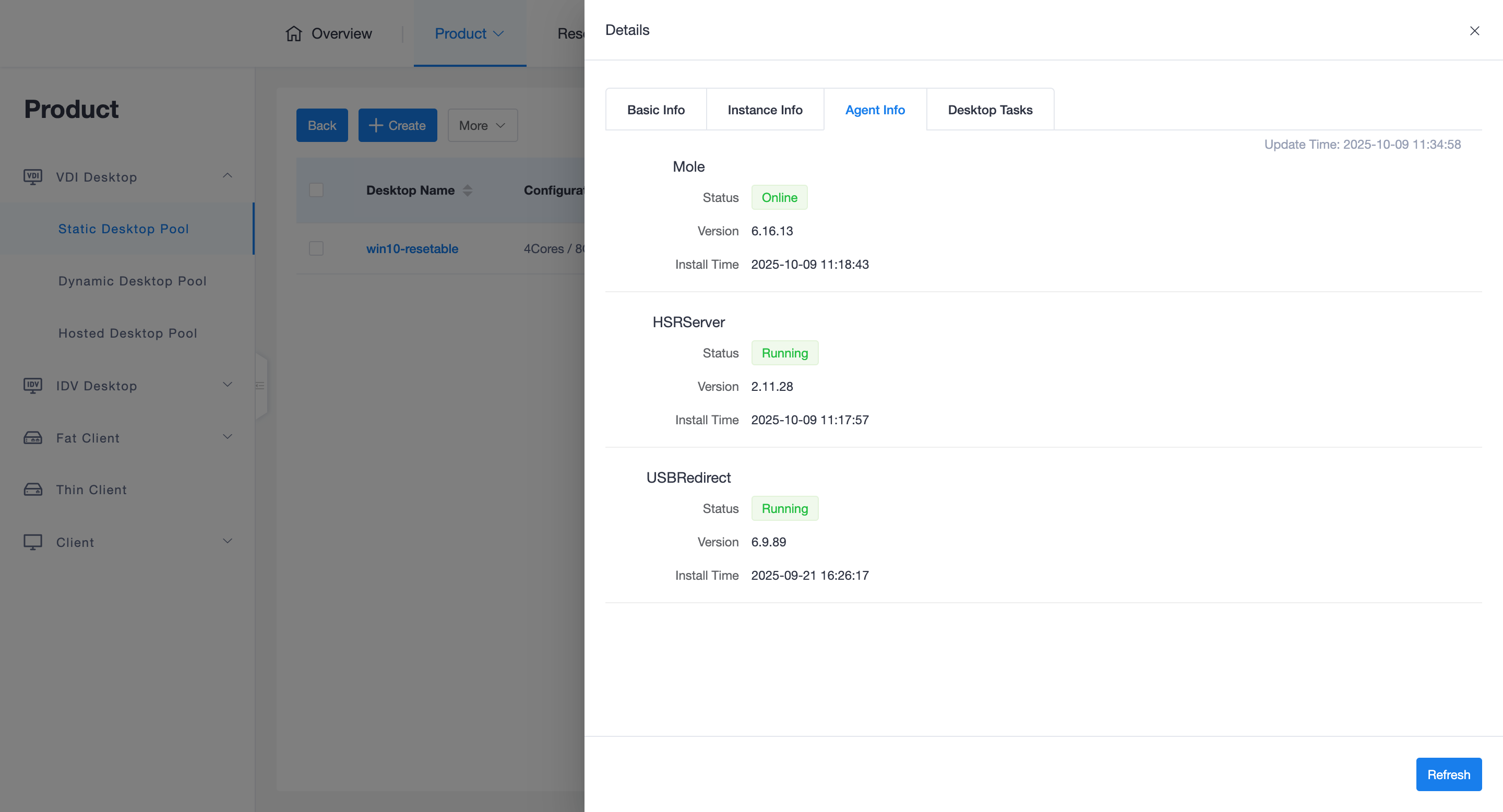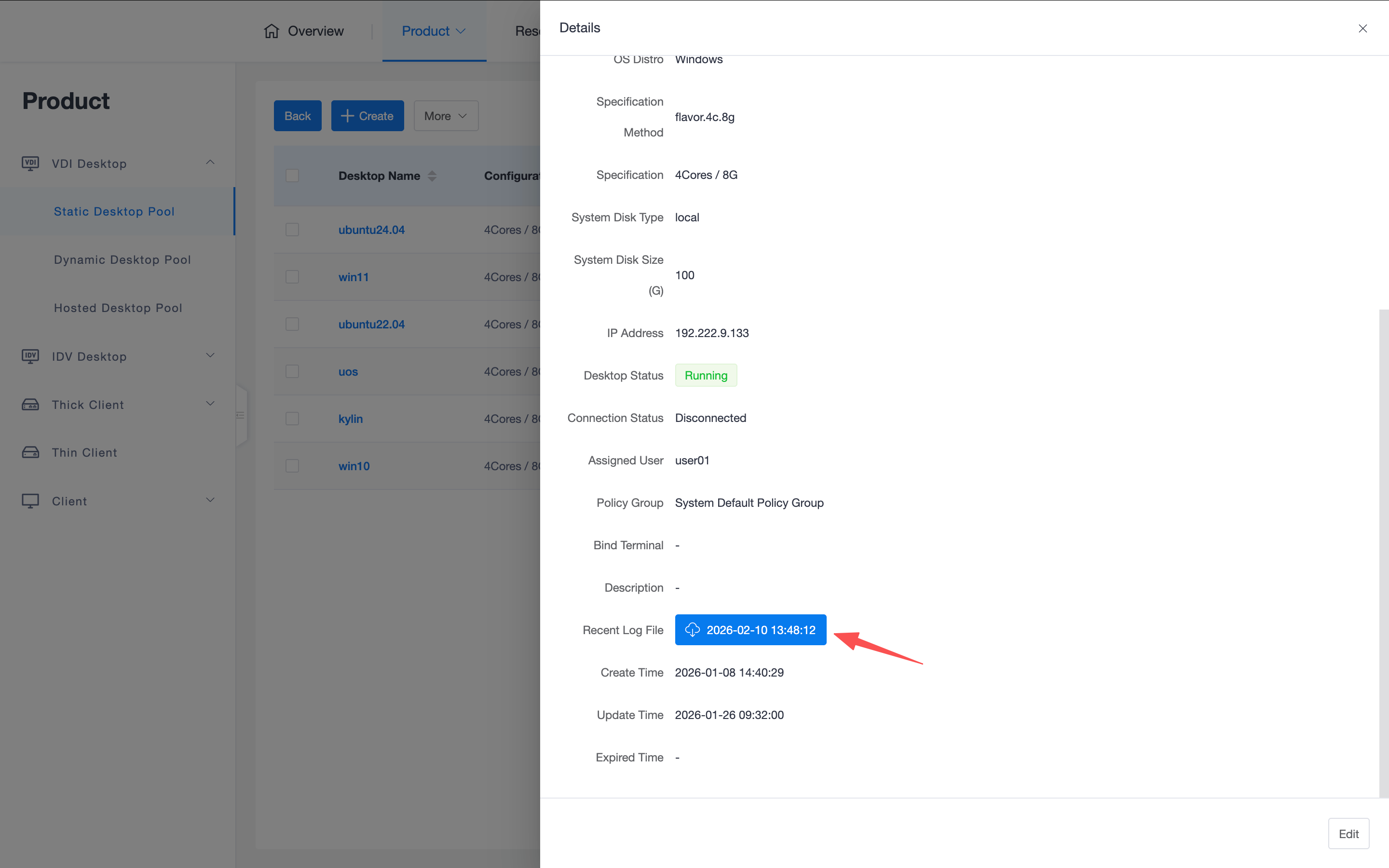 Click the desktop name in the desktop list to enter the details page, which is the core entry point for administrators to perform daily fault diagnosis.