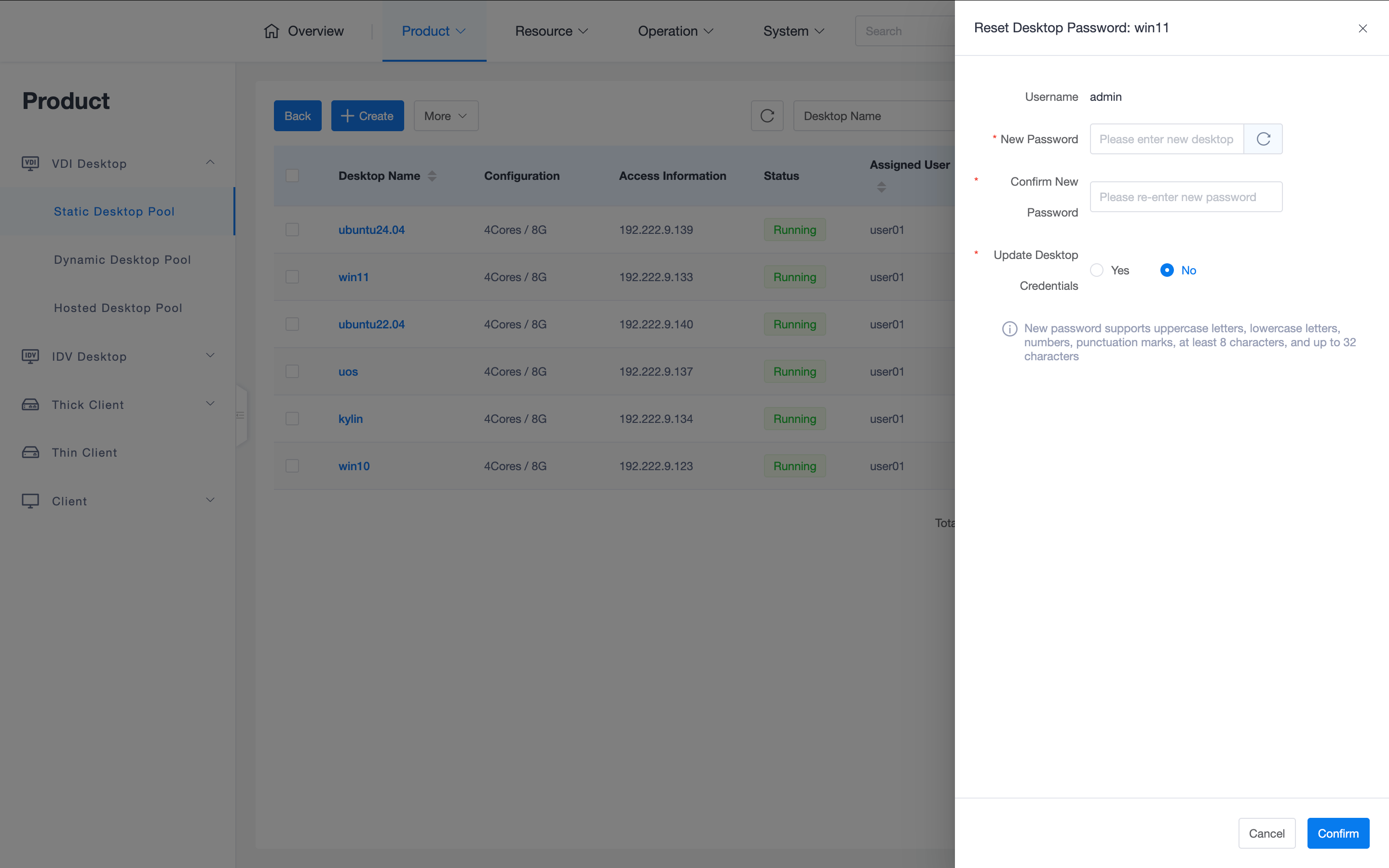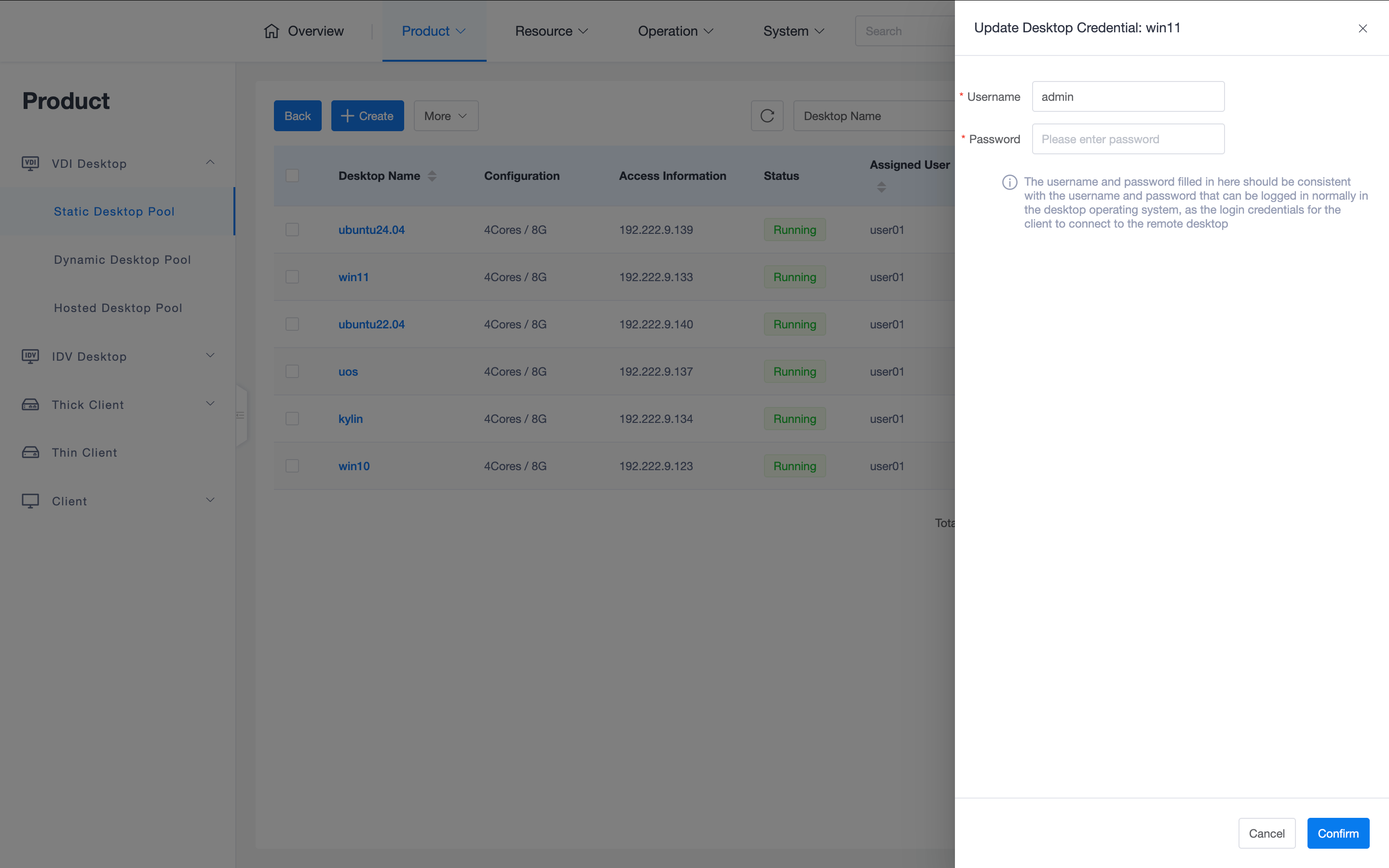 Security Credentials: The OS username and password of the selected image or template must be non-empty and correct, to prevent the desktop from being unable to connect from the client due to incorrect initial password.