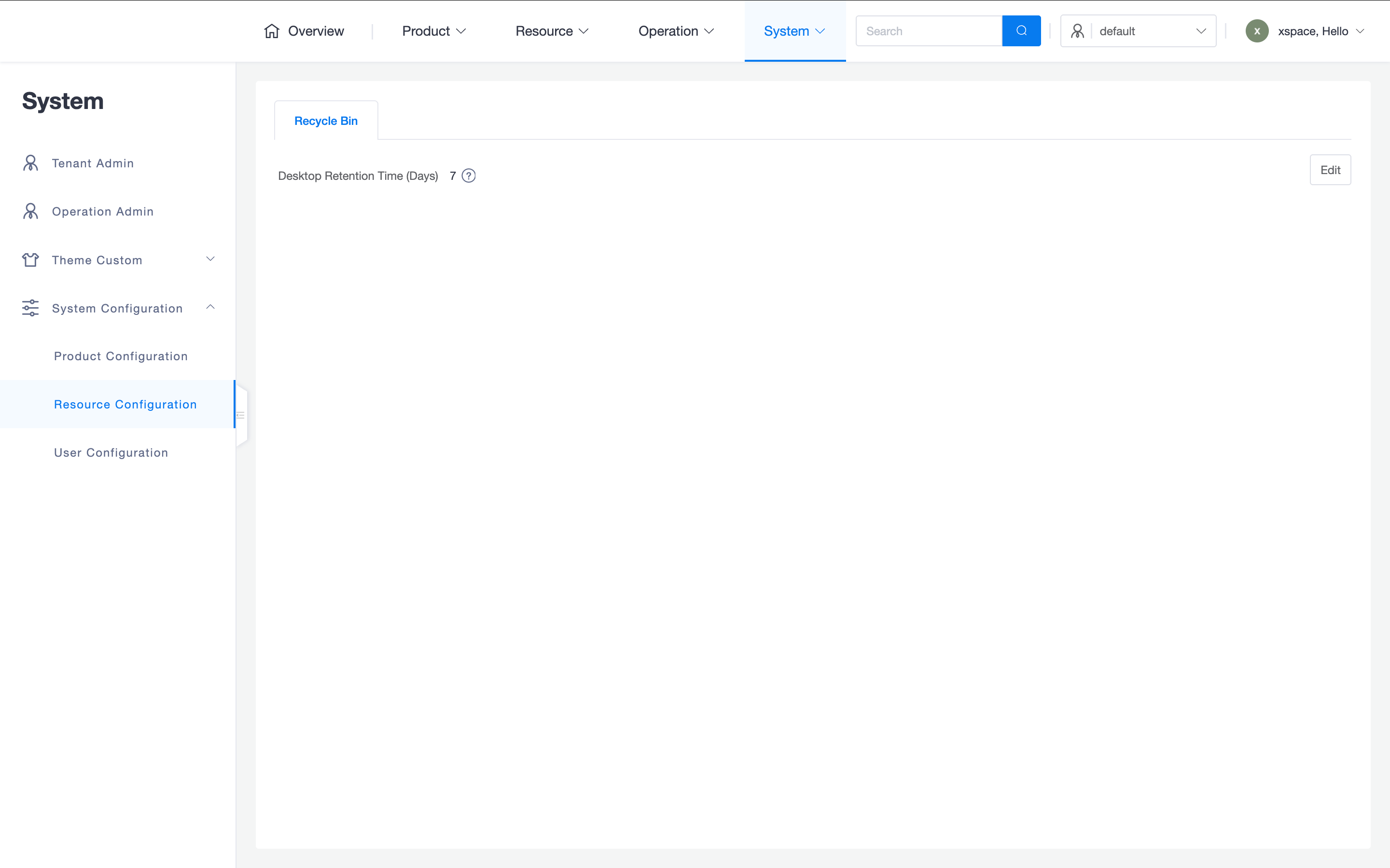 - Cloud Desktop Retention Time: Specifies the number of days a cloud desktop will be retained in the "Recycle Bin" after deletion. Within this period, administrators can recover the desktop and its data at any time; after the deadline, the system will automatically and completely clear the resources to release underlying storage space. The default is usually 7 days.