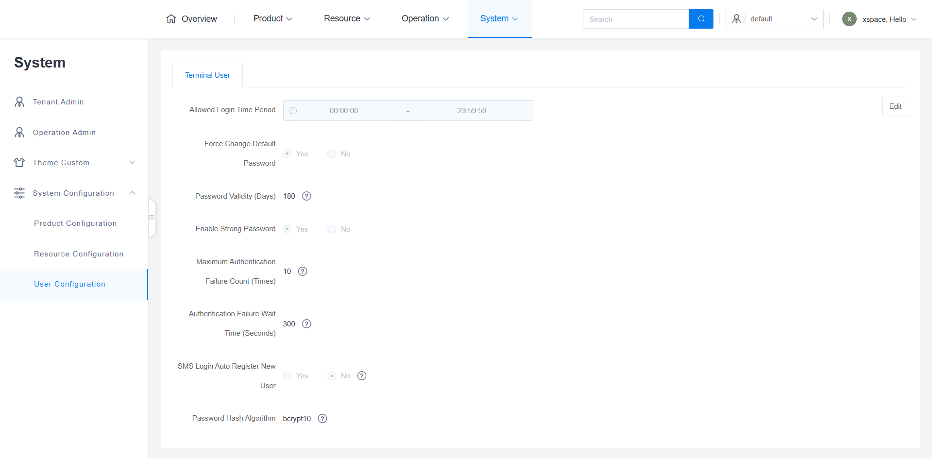 - Allowed Access Time Period: Supports configuring the valid time period during which users can log in to xSpace (e.g., 00:00:00 to 23:59:59). Login requests outside the allowed time period will be rejected, enabling strict control over working hours.