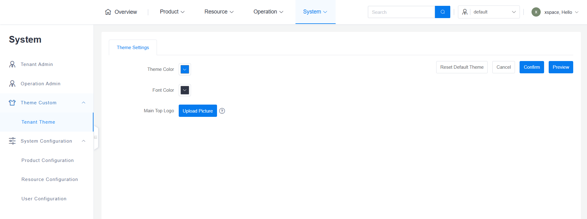 - Isolation: Theme customization for the current tenant will not affect the interface style of the system console or other tenants.