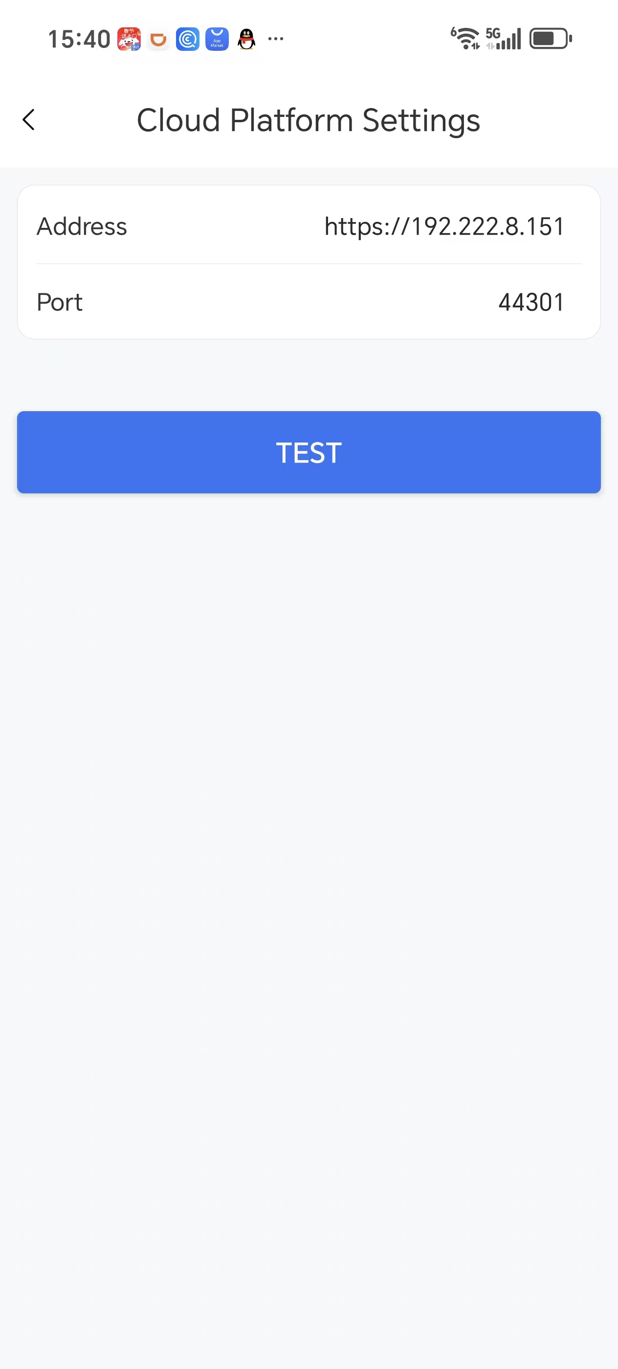 Open Cloud Platform Settings: Click the "Cloud Platform Settings" option, then fill in the actual cloud platform address (IP or domain name) and port number (default is 44301) in the pop-up interface.