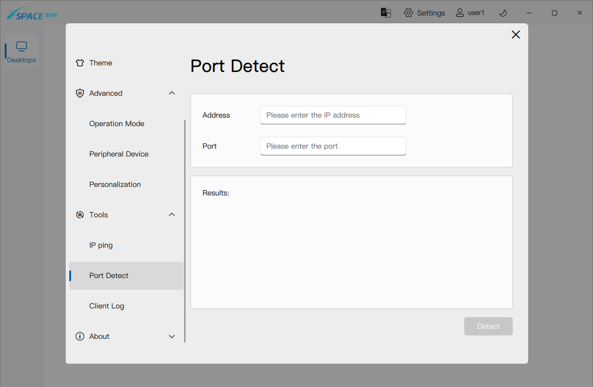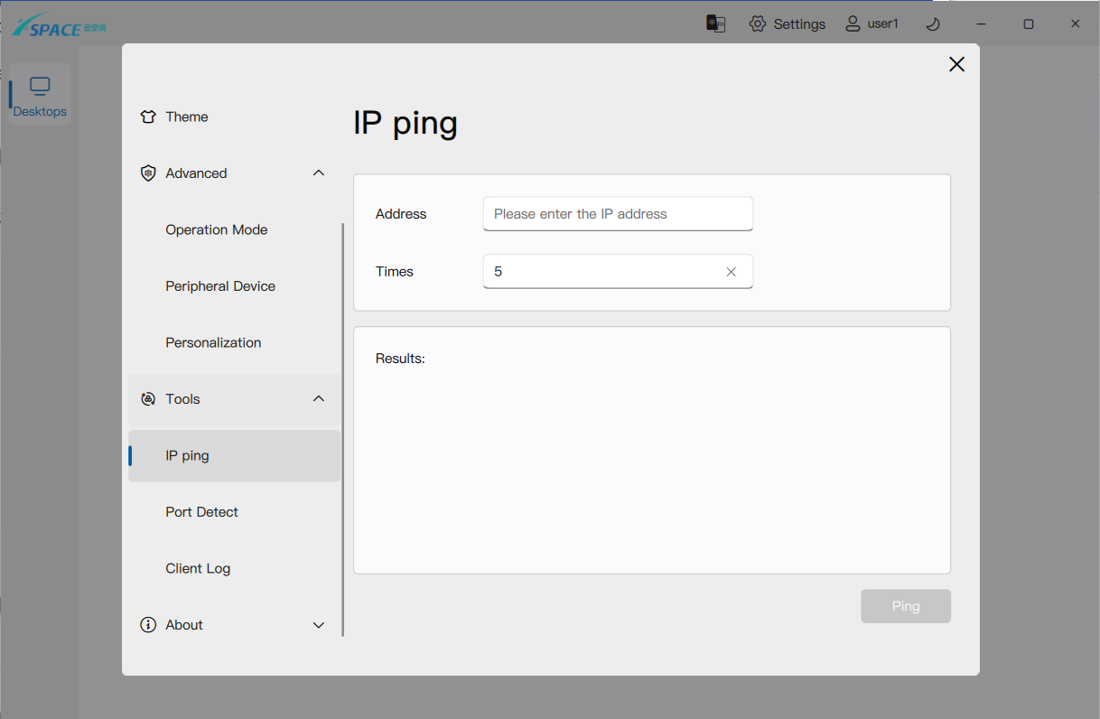 Network Link Detection: Detect whether there is latency or packet loss when the local client accesses the xSpace management component or cloud desktop address. For specific operations and parameter analysis, please refer to: User Guide -> Terminal Settings -> O&M Tools.