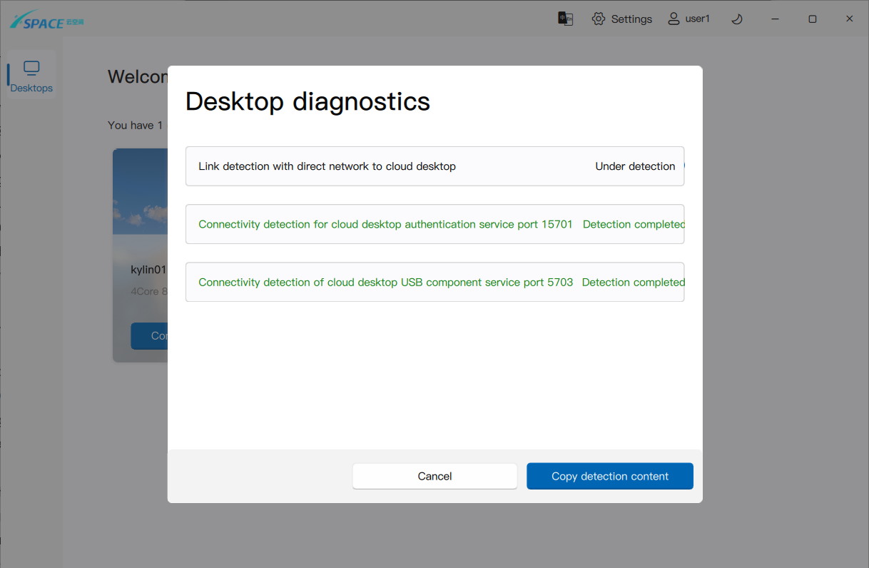 When the desktop cannot connect, the "Network Detection" function can be used to check whether the desktop's network link is clear.