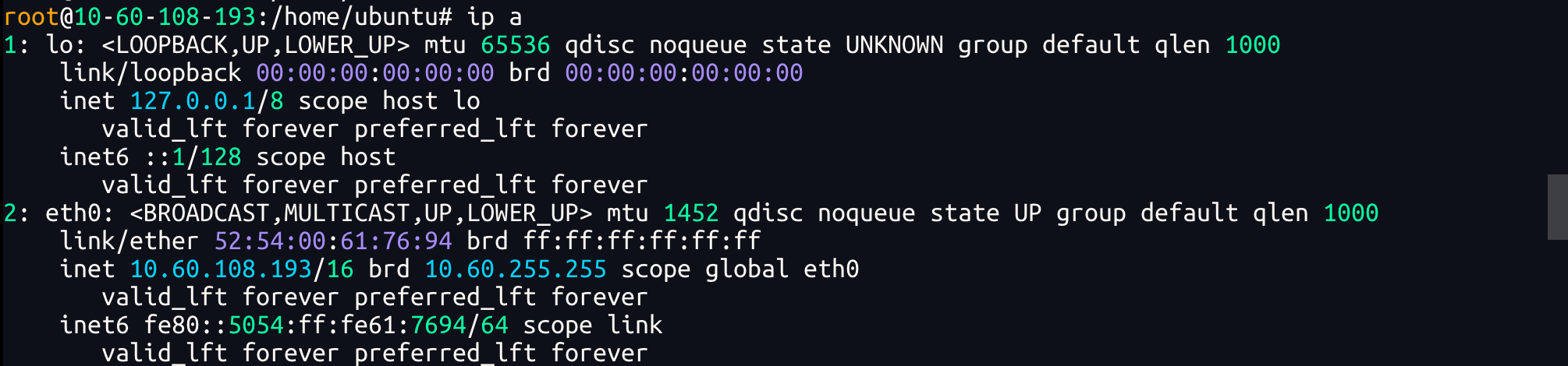 ip a命令,确认持有正确内网 IP 地址的网口名称(常见为eth0、enp1s0等)。