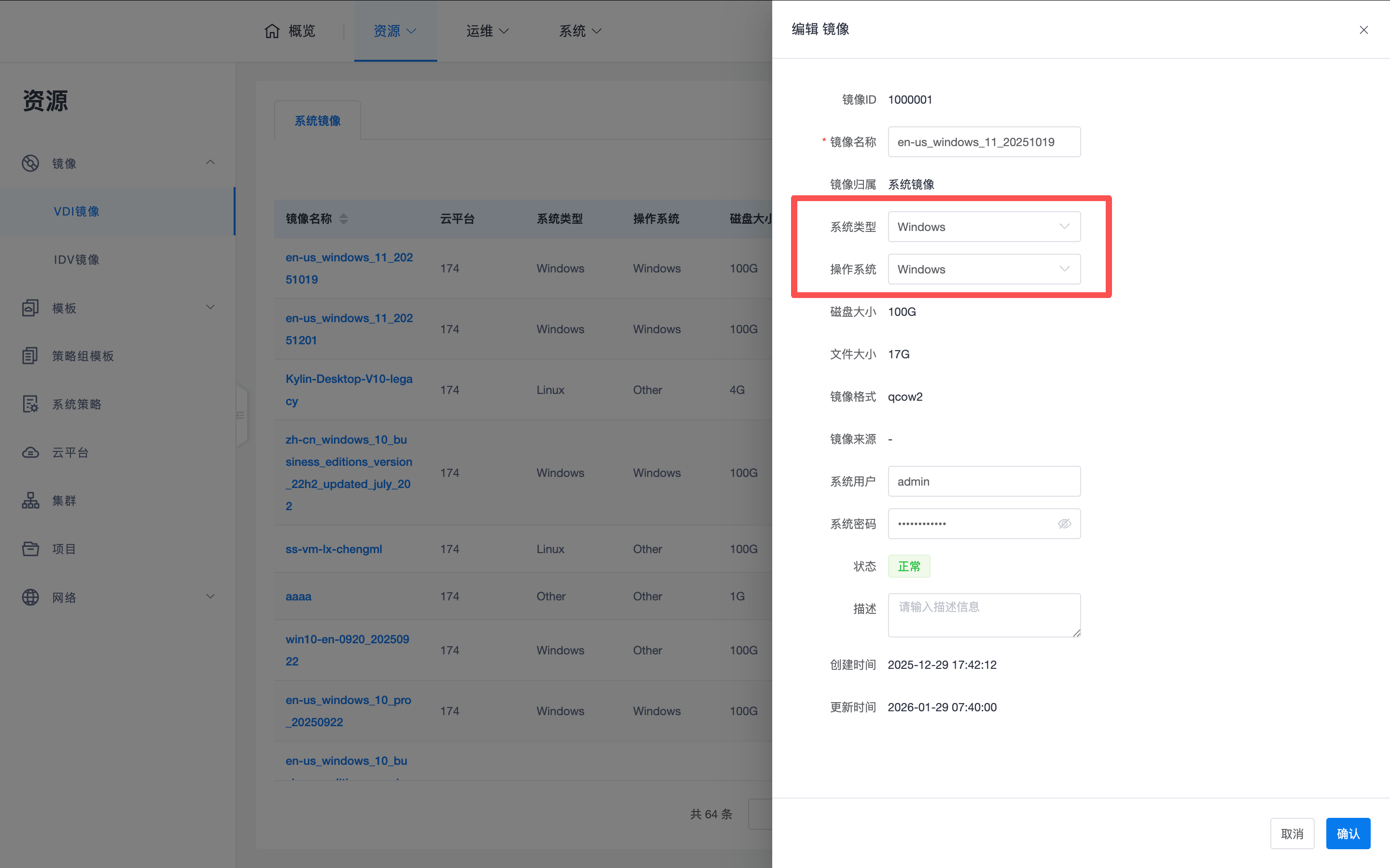 - 修改位置:这两个属性仅能在以下业务页面修改,无法在云平台内的镜像列表处直接修改: